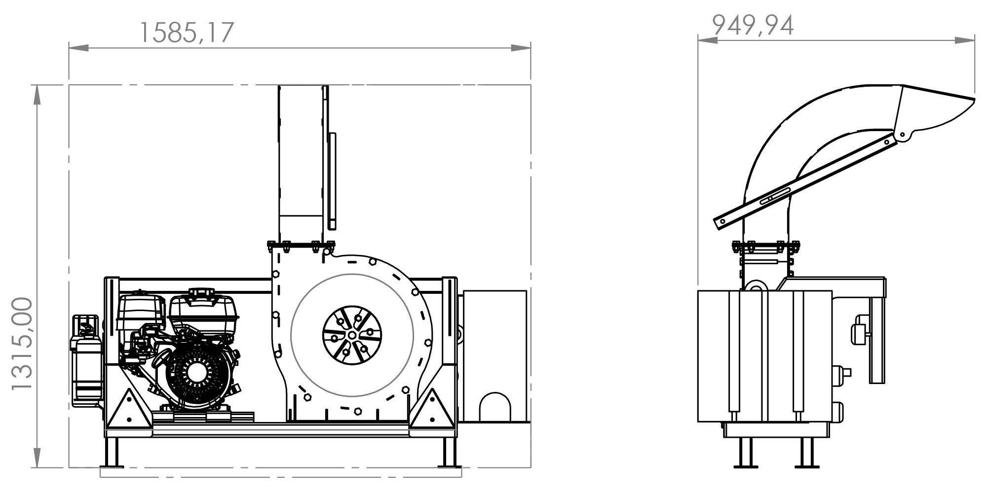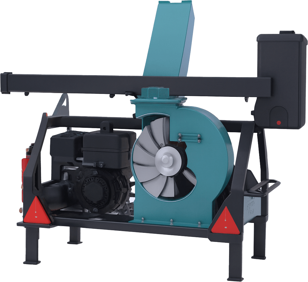 Kamu kurumları, belediyeler ve sıfır atık projelerinde kullanıma uygun bu sistem; yaprak, çim ve dal gibi atıkların kolayca toplanmasını sağlar. Tekerlekli çelik besleme ve çıkış boruları ile destek askısı, makinenin hem taşınabilirliğini hem de kullanım kolaylığını üst düzeye çıkarır.